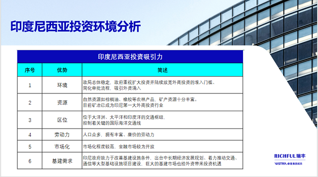 作為有資深的中企全球化發(fā)展一站式專業(yè)服務(wù)機(jī)構(gòu),RICHFUL瑞豐可竭誠(chéng)為您提供出海印尼全方位的支持與定制化解決方案,以確保您的投資項(xiàng)目順利展開,實(shí)現(xiàn)預(yù)期的商業(yè)目標(biāo)。