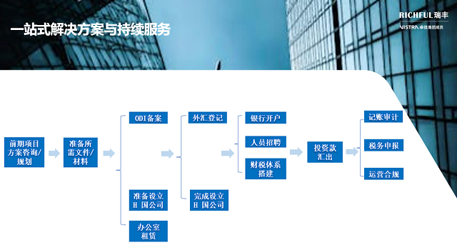 H國投資項目中所涉及的各個環(huán)節(jié),RICHFUL瑞豐內(nèi)部不同職能團隊共同協(xié)作,致力于為客戶提供一站式解決方案,為客戶節(jié)省下與多個不同服務(wù)機構(gòu)溝通的時間成本。