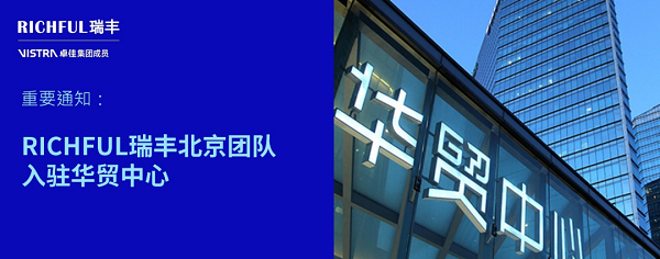 自2025年5月1日起,RICHFUL瑞豐北京團隊入駐朝陽核心商務(wù)區(qū)華貿(mào)中心,以升級的辦公環(huán)境和資源整合,開啟專業(yè)服務(wù)新里程!