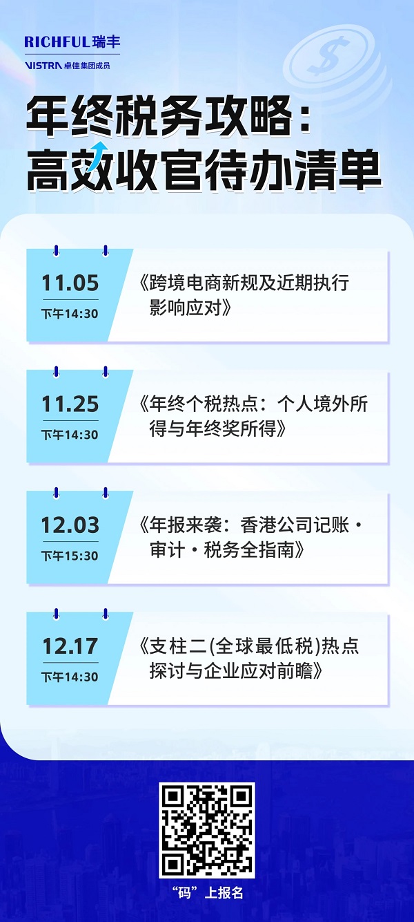 掃描下方海報(bào)二維碼 一鍵報(bào)名多場年終稅務(wù)研討會(huì)